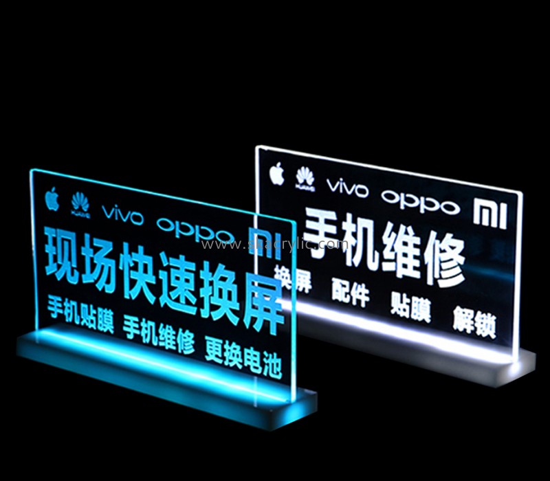 Illuminate your brand with our captivating countertop plexiglass LED advertising signs! As a leading acrylic display manufacturer, we specialize in providing custom and wholesale services for these eye-catching displays. Our expert team can create personalized LED signs that perfectly represent your brand identity.