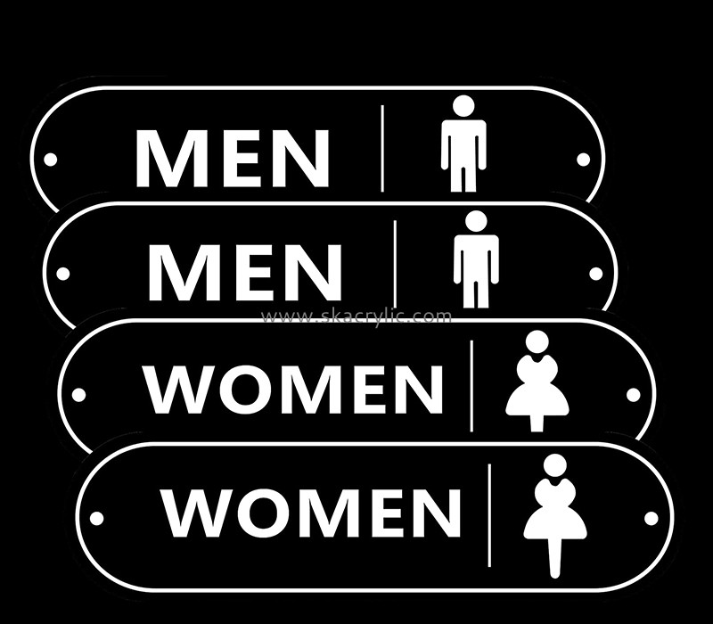 The custom wall black acrylic wall mounting toilet sign is a sleek and professional signage solution for bathrooms. Constructed from high-quality black acrylic material, this sign offers durability and a contemporary aesthetic. Its wall-mounted design allows for easy installation and maximizes visibility.