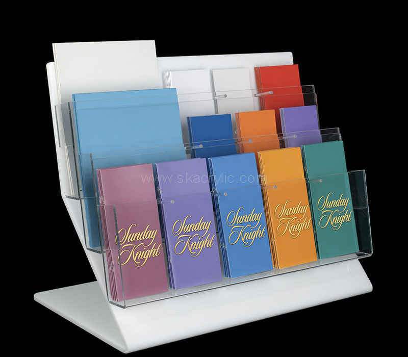 Display your brochures, flyers, and pamphlets elegantly with our custom acrylic 3-tiered literature holder rack. Fully customizable in colors, shapes, and sizes. Sleek, durable, and crystal clear. Perfect for retail, offices, and events. Wholesale only.