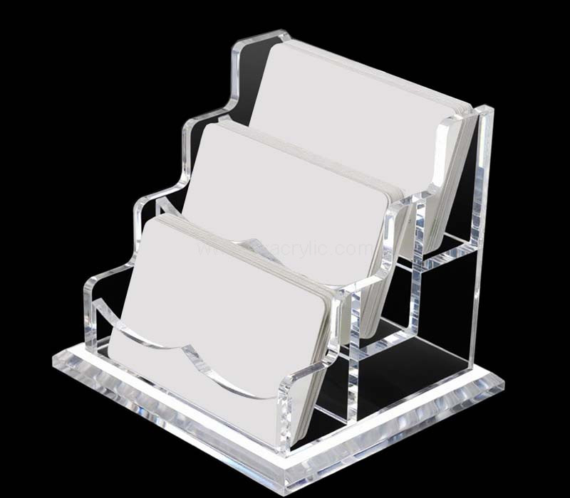 Custom acrylic 3 tiers business card display stand – stylish multi-level design for maximum visibility and organization. Ideal for offices, counters, or events. Wholesale only, perfect for bulk orders. -All Fees Included – You Just Receive Your Order.