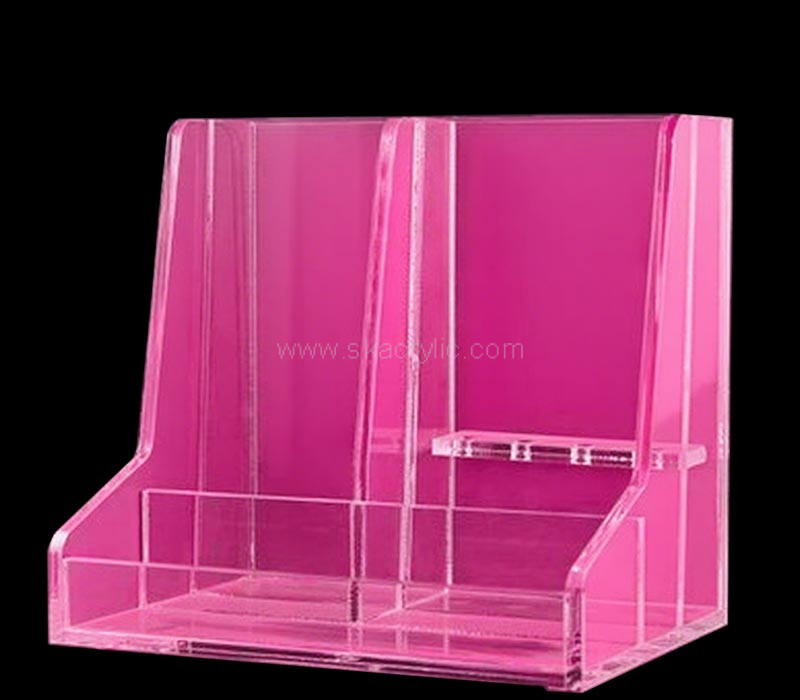 Custom translucent pink acrylic countertop literature holders—elegant and functional for displaying brochures, flyers, or pamphlets. Enjoy all-in delivery with no tax, ensuring a seamless experience. Ideal for retail environments, offices, or events, offering a stylish solution to organize your literature without any hidden fees or surprises.