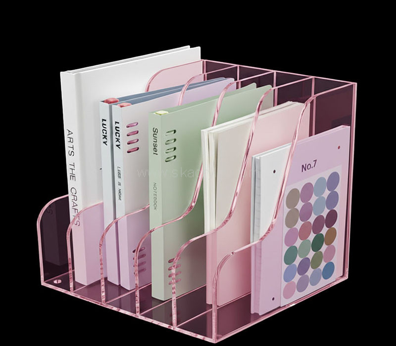 Custom translucent purple acrylic desktop file holders with 5 dividers, designed to keep your documents, folders, and papers neatly organized. The vibrant color and modern acrylic design add style and clarity to any workspace. Built for durability and convenience. Delivered straight to you with tax included for easy ordering.