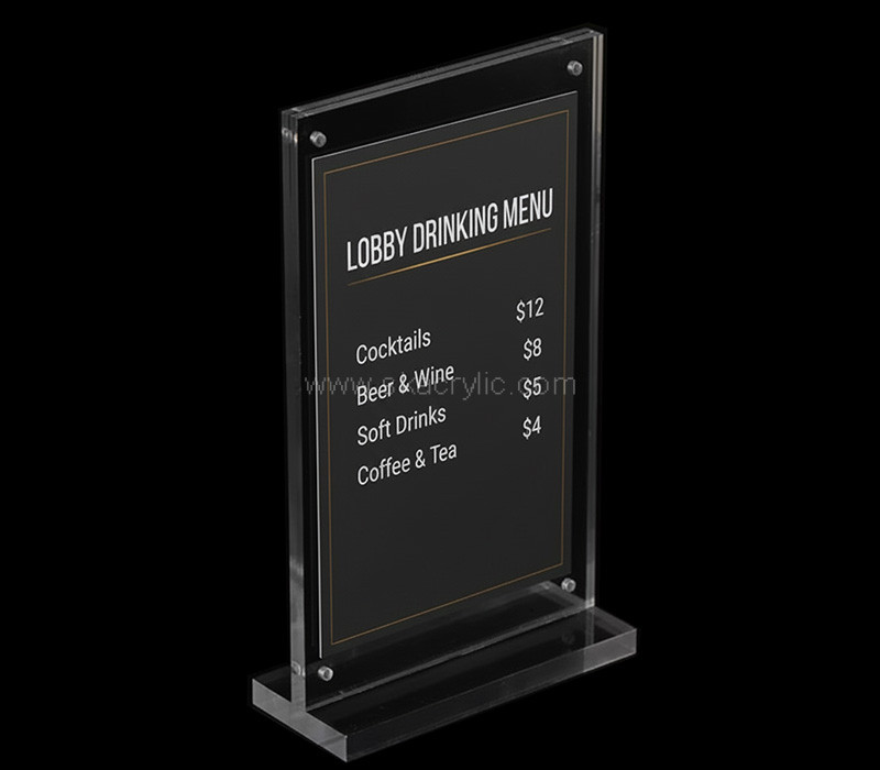 Custom acrylic lobby drinking magnetic menu holder designed for cafes, restaurants, and hotel lobbies. Features a clear magnetic frame for quick and easy menu changes. Made from durable, high-transparency acrylic for a professional display. Ideal for showcasing drink lists or promotions. Door-to-door delivery provided, all taxes fully paid.