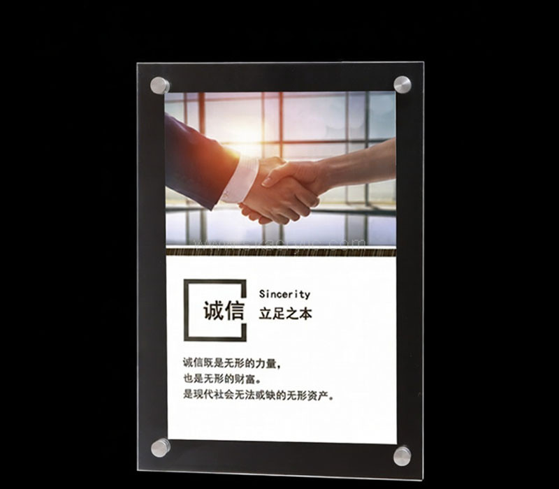 Custom acrylic wall-mounted AD sign holder, designed to showcase advertisements in a professional and eye-catching way. Made from durable, clear acrylic, it offers a clean, modern display. Customizable in size and design, perfect for promoting products or services in any space.