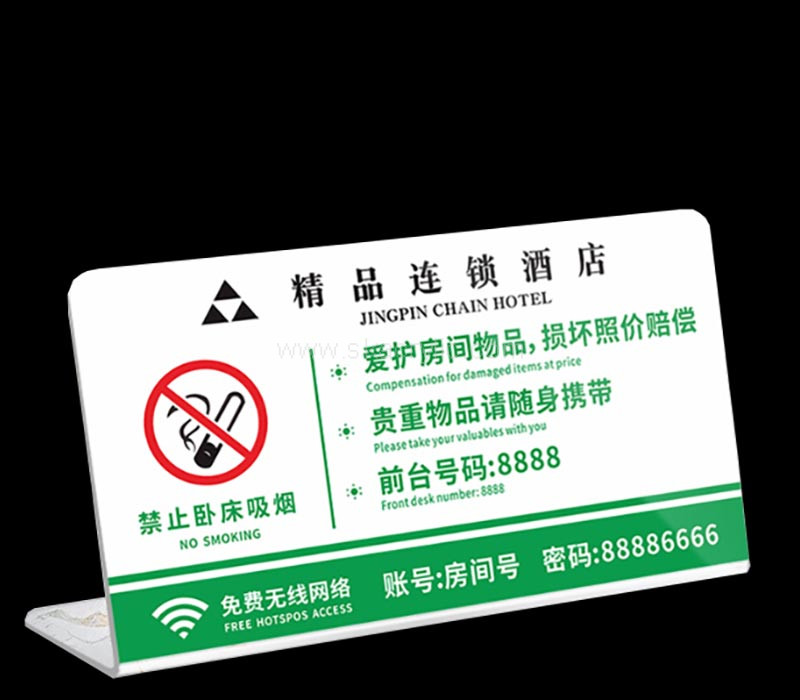 Custom plexiglass hotel wireless free wifi password sign SH-1003
