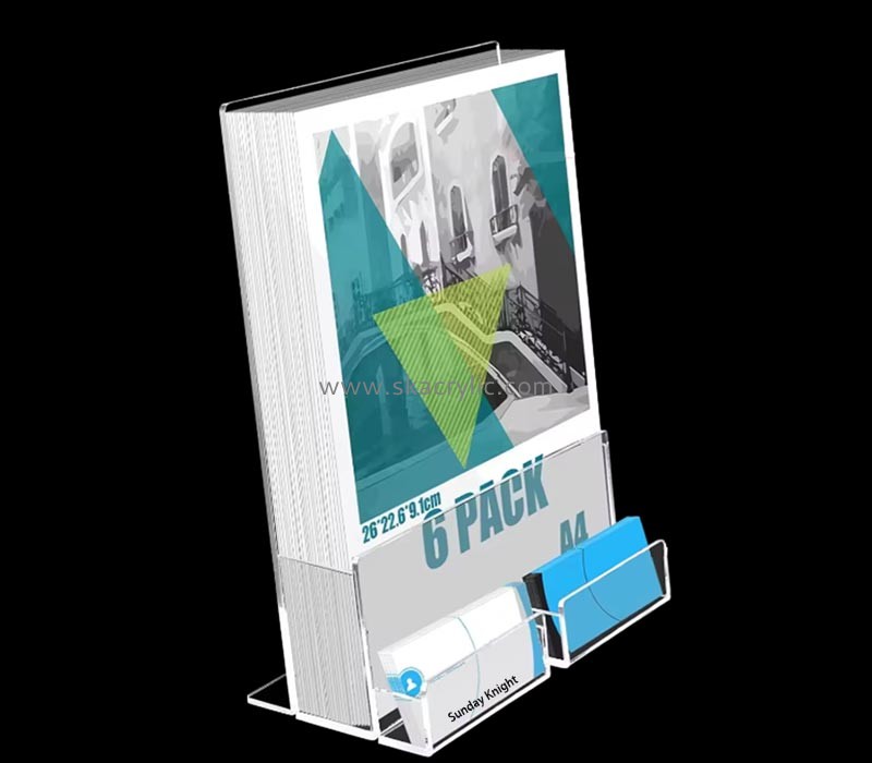 Custom wholesale acrylic pamphlet holders with business card holders combine functionality and style for professional settings. These holders, crafted from clear acrylic, offer a dual-purpose design that accommodates both pamphlets and business cards.