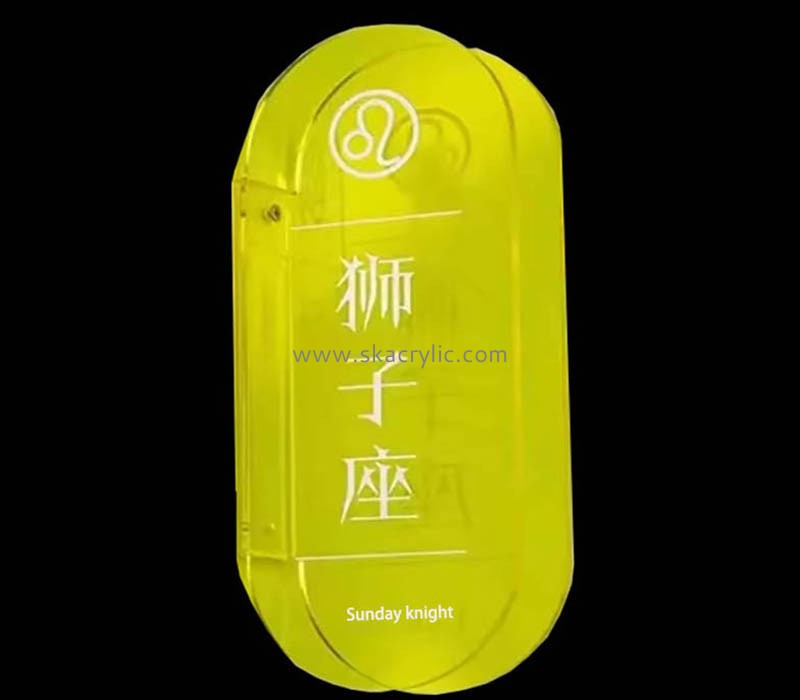 This custom wholesale translucent yellow acrylic wall billboard offers a vibrant and modern solution for displaying simple signs. Made from durable, high-quality acrylic, the sign features a translucent yellow finish that adds a pop of color while allowing light to pass through, creating an eye-catching effect. D