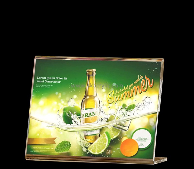 A custom plexiglass slant sign holder is a sleek, transparent display accessory crafted from durable, high-quality plexiglass material. This holder showcases signs, menus, or promotional materials with a stylish slanted design, offering optimal visibility and a modern touch to any setting.
