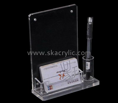 Table top clear acrylic sign holder with business card and pen holder customized by acrylic company with reasonable price, welcome to inquire!