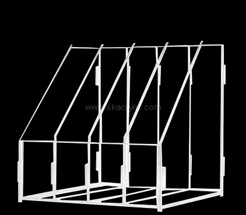 Wholesale custom acrylic file holders with four dividers, designed for efficient organization. Perfect for offices, classrooms, or retail use. Durable and sleek, these holders offer a professional way to store and display files, folders, or documents.