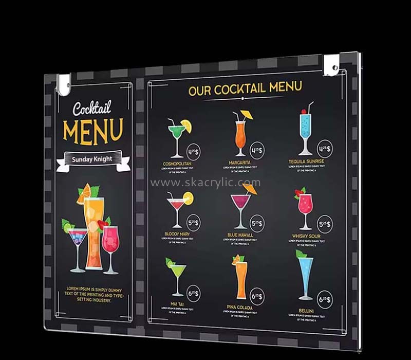 Wholesale custom acrylic cocktail wall menu holders are an elegant choice for bars and restaurants. These holders are designed to showcase your cocktail menu with sophistication. Made from high-quality acrylic, they are durable and easy to clean, ensuring longevity and low maintenance .