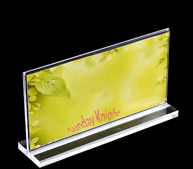 A durable wholesale custom acrylic tabletop sign holder, perfect for displaying menus, promotions, or informational signage. Sleek and crystal-clear design enhances visibility, while its compact size fits any tabletop setting. Ideal for restaurants, retail stores, and events.