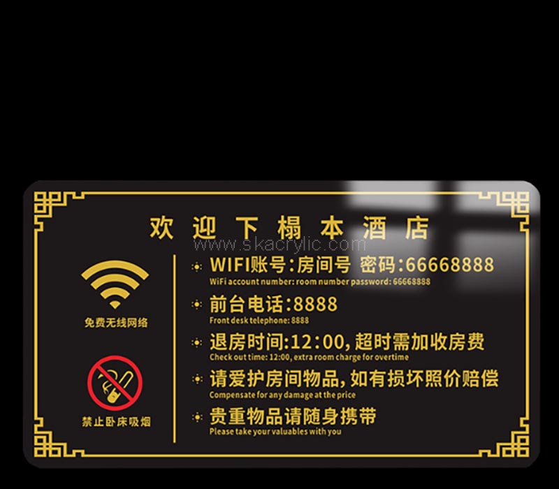 Wholesale custom acrylic wall signs for hotels, offering durable and stylish designs. Perfect for room numbers, directions, or reminders. Enhance your hotel's aesthetic with high-quality, personalized signage.