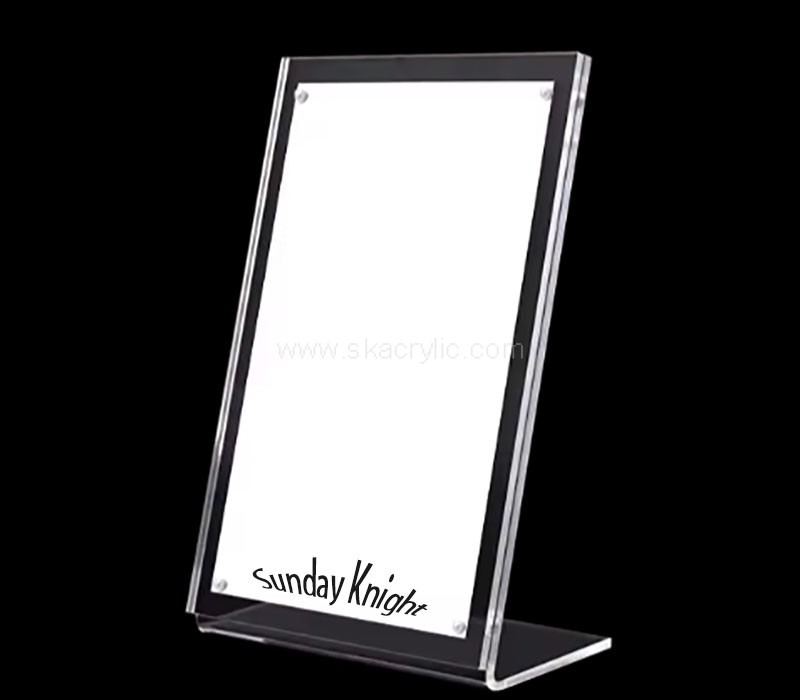A wholesale custom plexiglass L-shaped magnetic sign holder combines sleek design with practicality. The strong magnets securely attach to metal surfaces, while the L-shape ensures stability. Customizable in size and branding, it’s ideal for displaying signage in various settings.